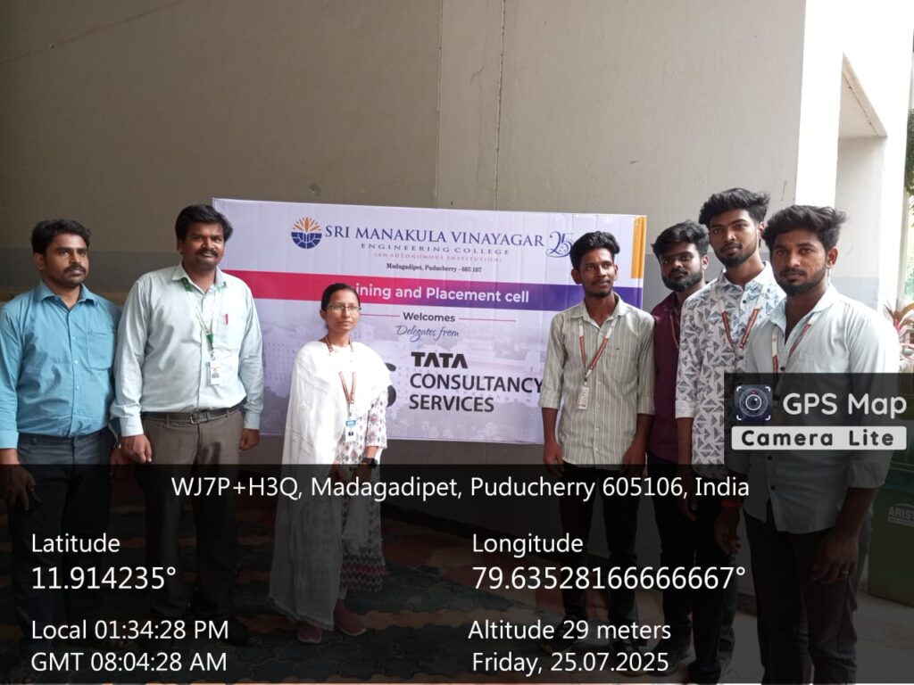 On July 25, 2025 – Our College Final Year students attended TCS Preplacement Talk held at Sri Manakula Vinayagar Engineering College, Puducherry