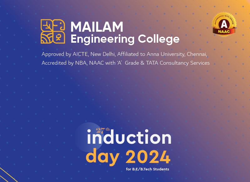 We are delighted to invite you to the 27th Induction Day of Mailam Engineering College! This event marks the beginning of an exciting journey for our new batch of students.