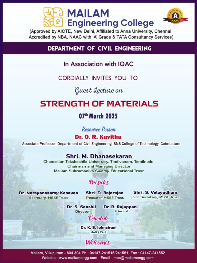 The department of Civil Engineering is organising a Guest Lecture on Strength of Materials 7th March,2025.