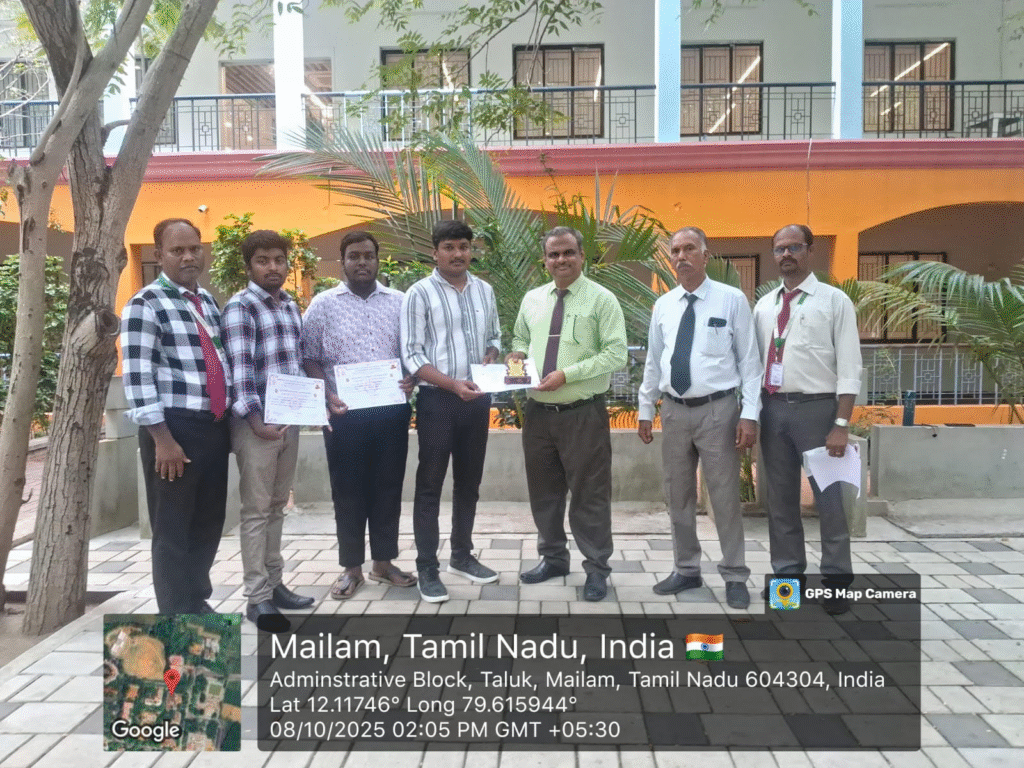 Mr. D. Inbakumaran, Mr. T. Meganathan, Mr. B. Bala, Mr. M. Arulkumar, and Mr. S. Barath, first-year MBA students, achieved First Place in the “Brand Blast” competition during the National Conclave on “College to Corporate: Managing the Transition”, held on 7th October 2025. Their victory highlights their exceptional teamwork and strategic thinking in branding and business management.