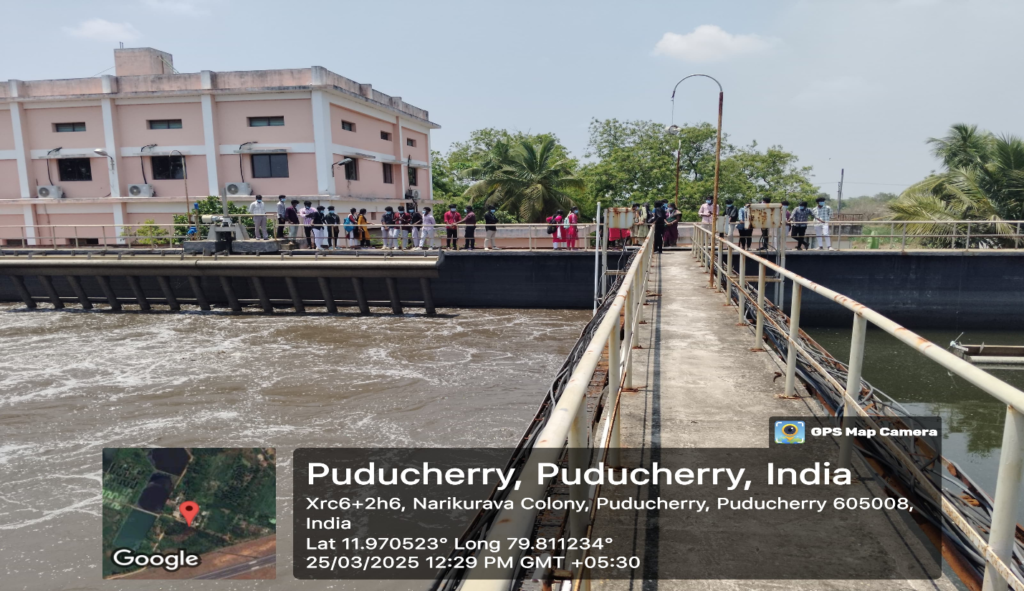 Er.G.Balaji, Junior Engineer, Public Health Department, PWD, Puducherry explains the students how to treat the sewage water and reuse the treated water for Agriculture and other purposes.