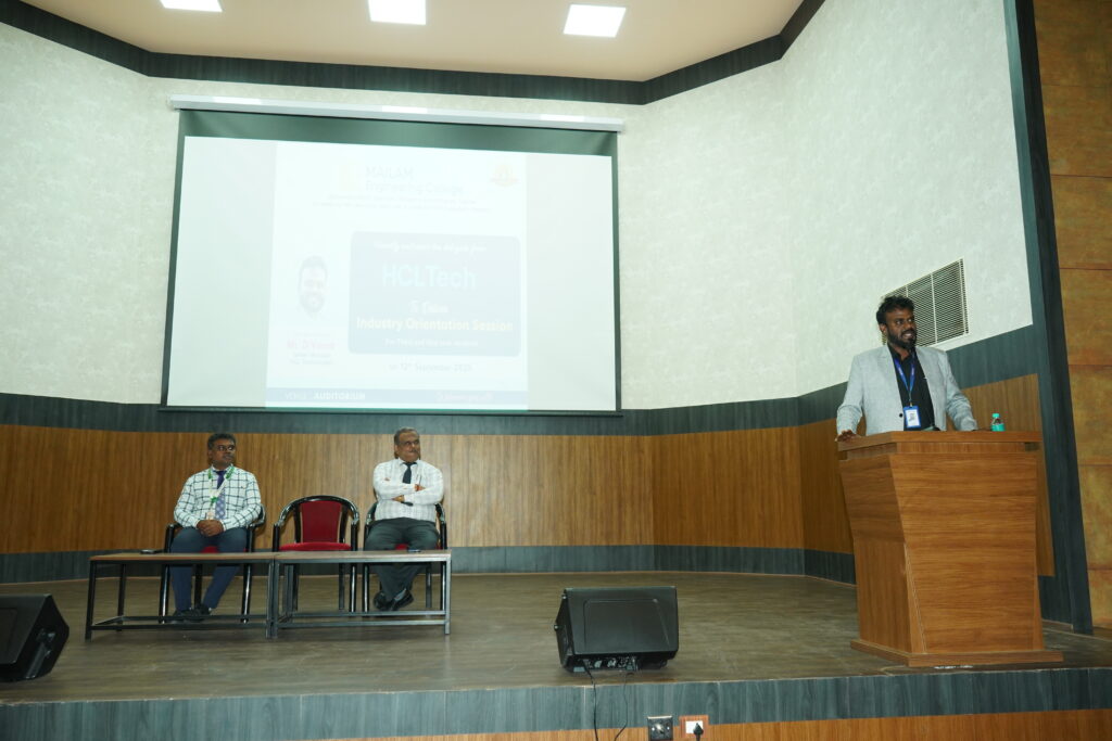 On September 12, 2025 – our College Training and Placement Cell organized a valuable Industry orientation Session for all Third year and Final year students at MEC Auditorium. The esteemed guest Mr.D.Vinod, Senior Manager, HCL Technologies, Chennai.